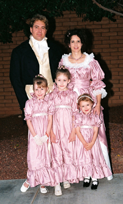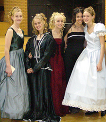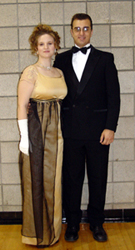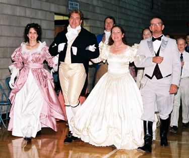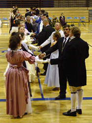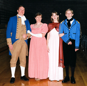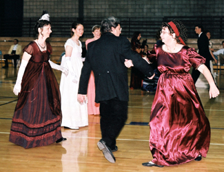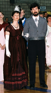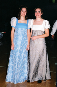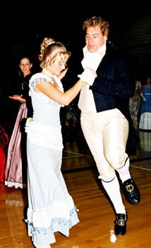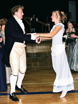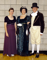 Our 2003 Pride & Prejudice Ball was a splendid success, more than living up to our high expectations! I do hope you were able to attend. Many presented splendid examples of Regency fashion. Others attended in tasteful modern attire and a few stray Georgians and Victorians joined in as well. All had polished their manners and the smiles radiating throughout the hall told the story better than words of a brilliant evening for all!