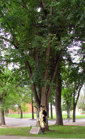 Beneath an American Elm Tree in Cambridge, Massachusetts, George Washington becomes commander in chief of the Continental Army of the United States - in reality a rag-tag bunch of highly individualistic and largely untrained militia. He accepted the responsibility though he regarded the task as virtually impossible (as indeed it was) and wrote privately to his friend Patrick Henry that he thought it would be the ruin of his reputation. Washington served throughout the American Revolution without pay and was ultimately triumphant against the world's greatest economic/military power. He was the man for the moment, proof of the "great man" theory that history is made by individuals who step forward and make a difference as leaders, as catalysts, as examples. He was the greatest American and shines out even among the truly impressive constellation of his generation of founding fathers. We haven't had another quite like him.