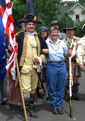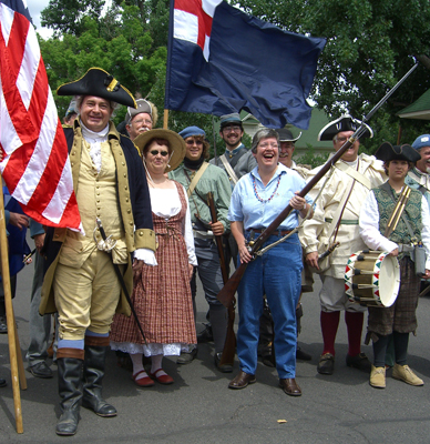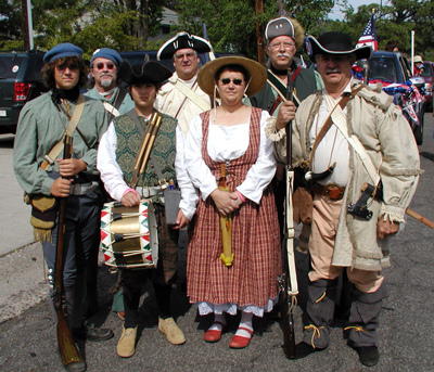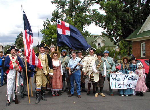 Re-enactors from the American Revolution marched