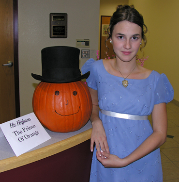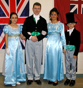 I cannot thank you enough for hosting such a splendid evening of fun! I am happy to report that my family and I may be coming to the Victorian Christmas Ball as well. I can't wait! Well, after a night of dancing, I must say that some of my favorite dances were: The "shoe dance", the waltz, and of course, the "pumpkin dance"! Alas, I did not catch most of the names, so you will have to guess the dances I am referring to! Some memories I also shared from that night were: The boys "charging" at our shoes to win a dance, the "peasants" jigging for a prize, and sitting in the middle chair holding a pumpkin, deciding who to give it to! =) I also must admit that many of my happiest memories are as a part of the We Make History Balls, and the We Make History family!