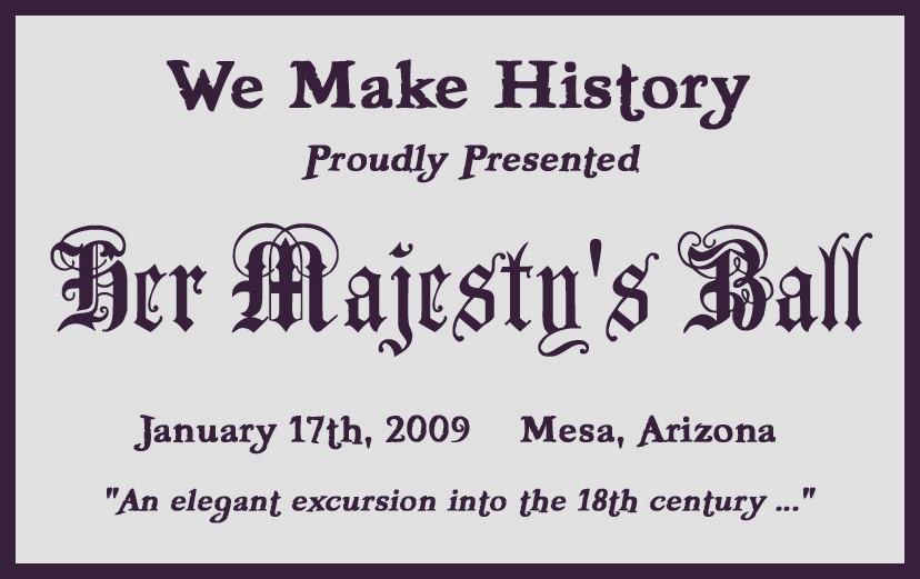 Each January "Her Majesty's Ball" is our opportunity to shew forth our best manners and best representations of the fashion and formality of the 17th and 18th centuries.