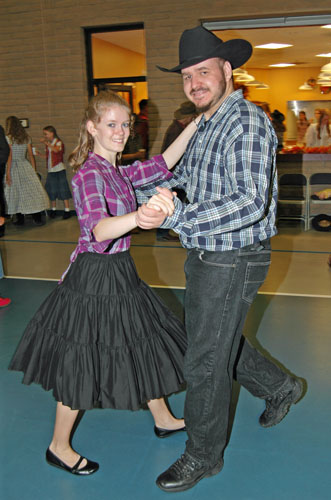 By golly, it was a blast. A whole lotta redneckin' good dancin' time, and I had one heck of an evening. My funniest memories are of one particular dance. Everybody in the whole room but our group got this one dance, and we didn’t get it worth two cents! We just sorta went with the calls that we could understand, tried to copy what everybody else was doing, and laughed at ourselves in the meantime. Besides that, The pell-mell dive for the ladies shoes is always so much fun, I did sort of a half dive, scraped my knees across the whole pile of boots, and finally latched on to a fancy stitched boot at the far side of the pile.